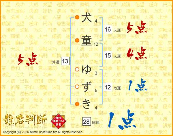 犬童ゆずきさんの外運は13画の5点!