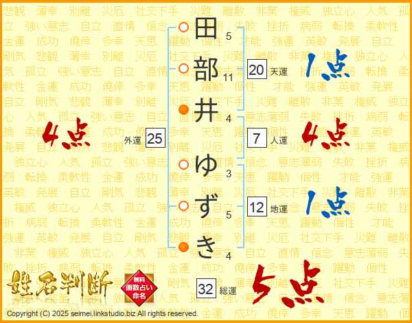 田部井ゆずきさんの総運は32画の5点!