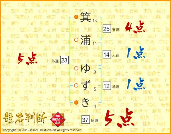 箕浦ゆずきさんの総運は37画の5点!