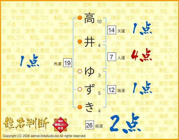 高井ゆずきさんの総運は26画の2点!