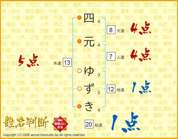 四元ゆずきさんの総運は20画の1点!