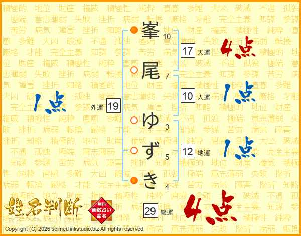 峯尾ゆずきさんの天運は17画の4点!