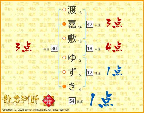 渡嘉敷ゆずきさんの総運は54画の1点!