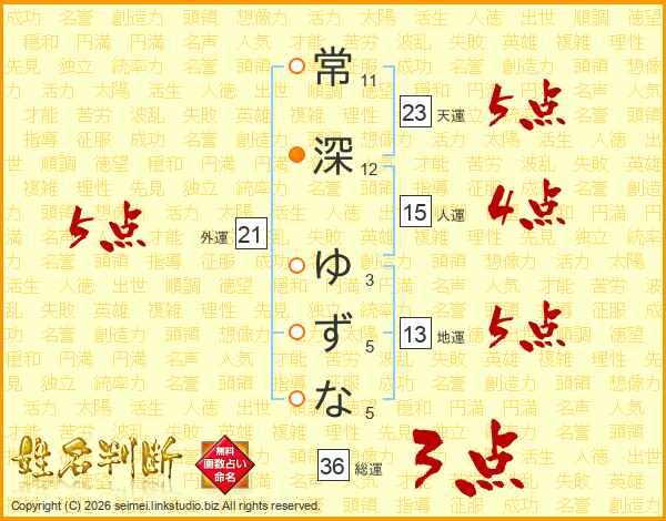 常深ゆずなさんの外運は21画の5点!