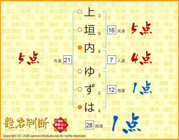 上垣内ゆずはさんの外運は21画の5点!