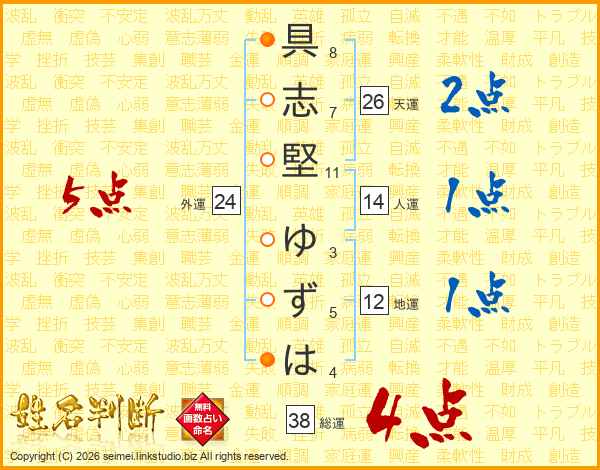 具志堅ゆずはさんの総運は38画の4点!