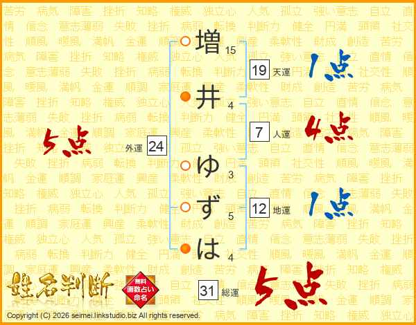 増井ゆずはさんの総運は31画の5点!
