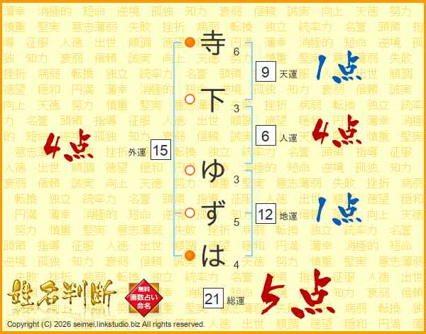 寺下ゆずはさんの総運は21画の5点!