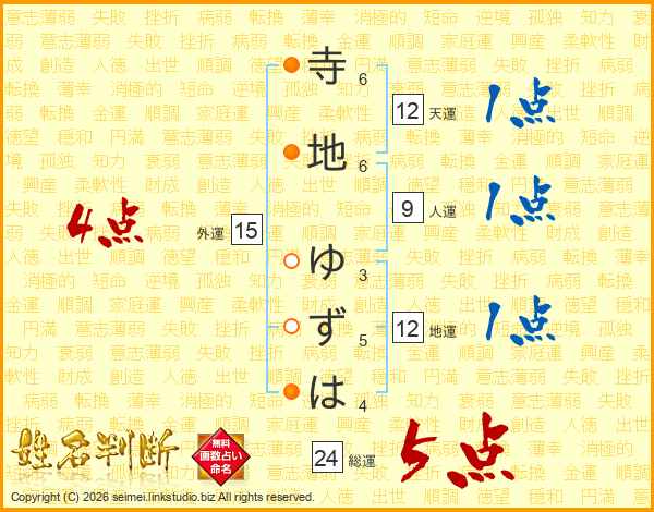 寺地ゆずはさんの総運は24画の5点!