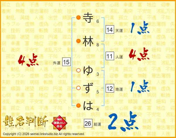 寺林ゆずはさんの総運は26画の2点!