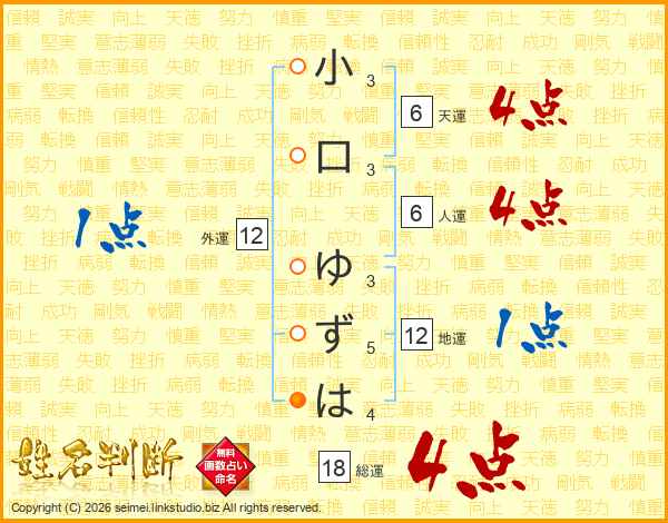 小口ゆずはさんの総運は18画の4点!