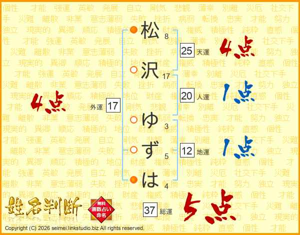 松沢ゆずはさんの総運は37画の5点!