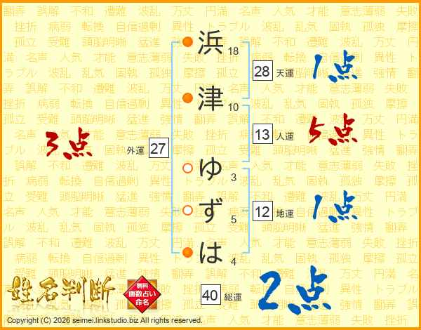 浜津ゆずはさんの総運は40画の2点!