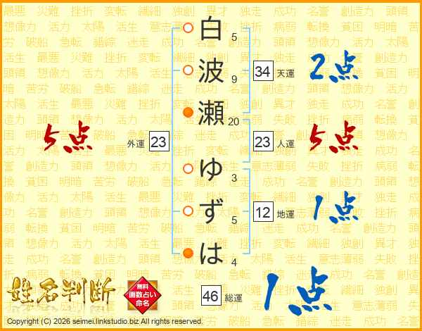 白波瀬ゆずはさんの総運は46画の1点!