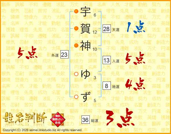 宇賀神ゆずさんの人運は13画の5点!