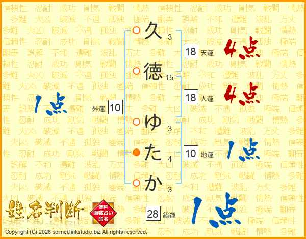 久(3画)徳(15画) ゆ(3画)た(4画)か(3画)