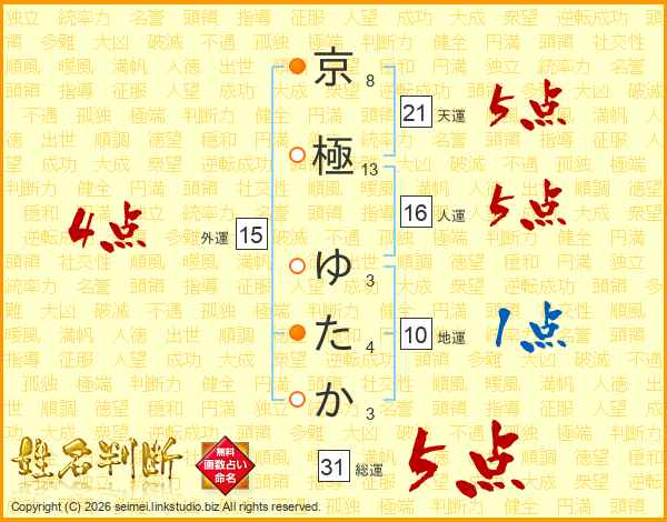 京極ゆたかさんの総運は31画の5点!