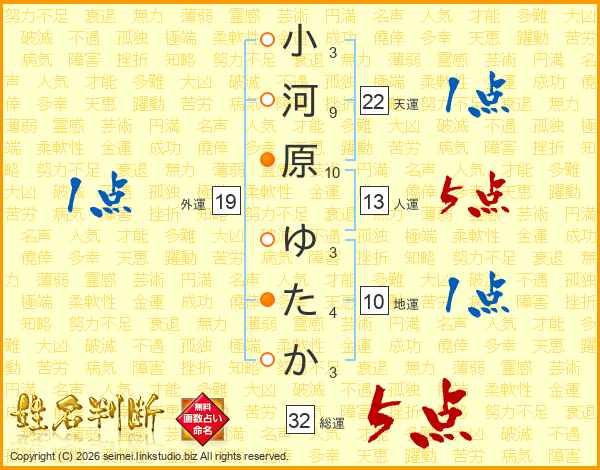 小河原ゆたかさんの総運は32画の5点!