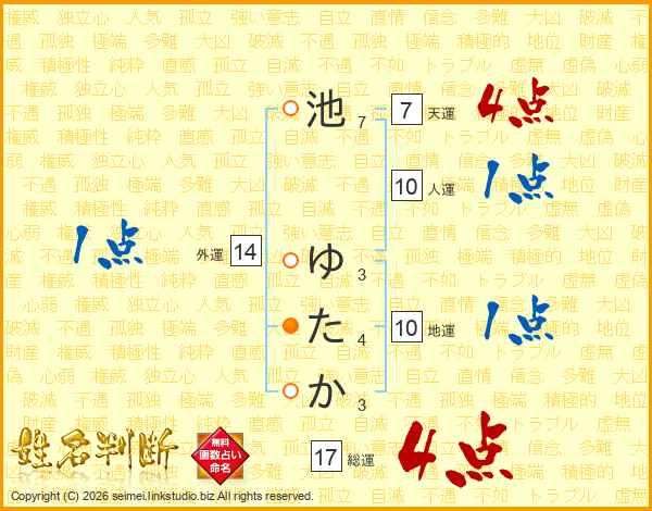 池ゆたかさんの総運は17画の4点!