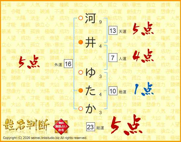 河井ゆたかさんの総運は23画の5点!