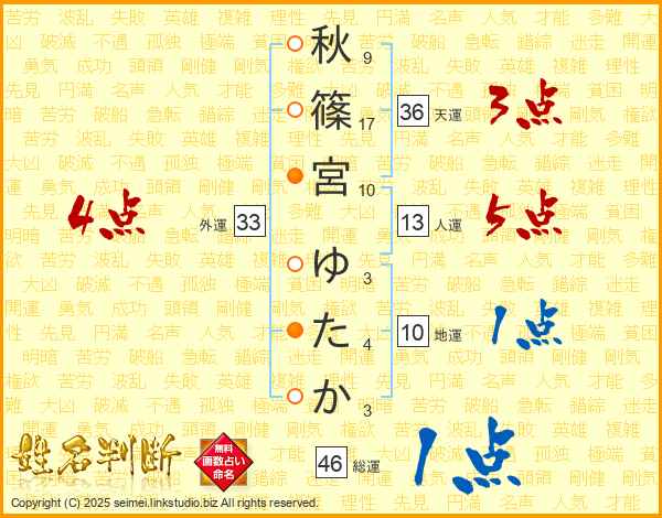 秋篠宮ゆたかさんの総運は46画の1点!
