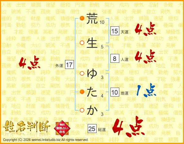 荒生ゆたかさんの外運は17画の4点!
