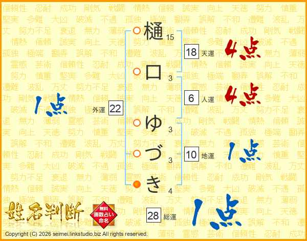 樋口ゆづきさんの天運は18画の4点!