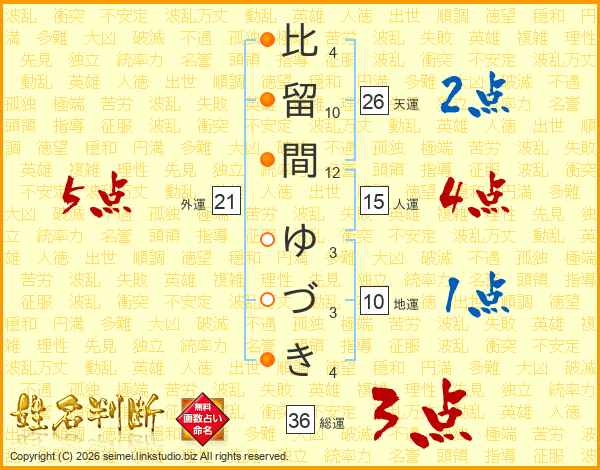 比留間ゆづきさんの天運は26画の2点!