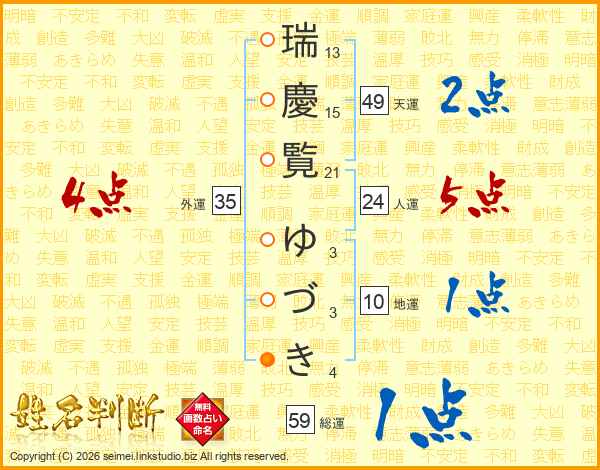 瑞慶覧ゆづきさんの総運は59画の1点!