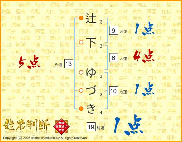 辻下ゆづきさんの外運は13画の5点!
