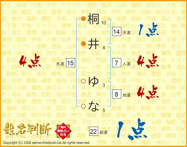 桐(10画)井(4画) ゆ(3画)な(5画)