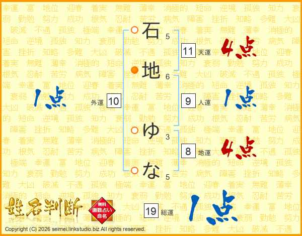 石地ゆなさんの総運は19画の1点!