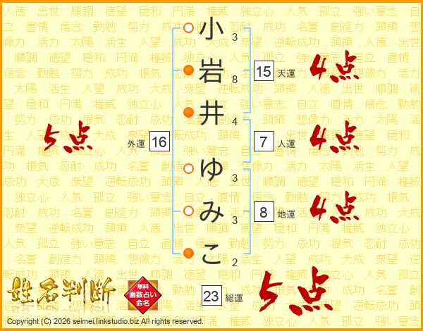 小岩井ゆみこさんの総運は23画の5点!