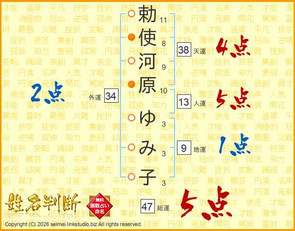 勅使河原ゆみ子さんの総運は47画の5点!