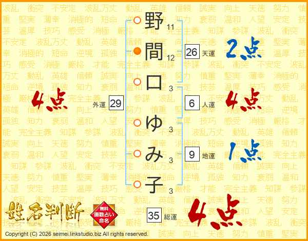 野間口ゆみ子さんの外運は29画の4点!