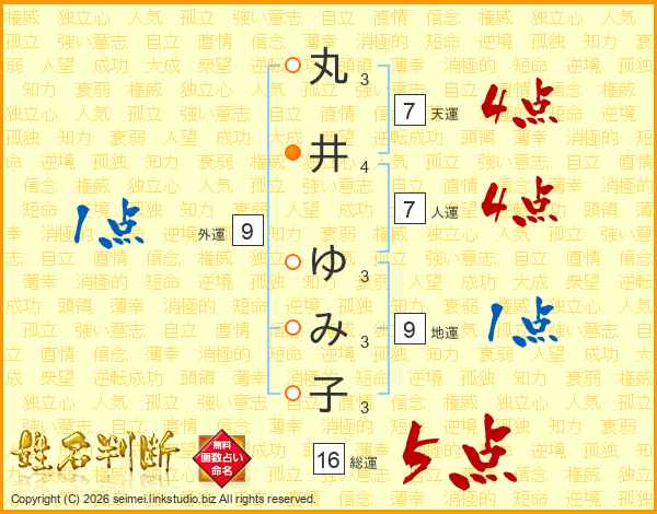 丸井ゆみ子さんの総運は16画の5点!