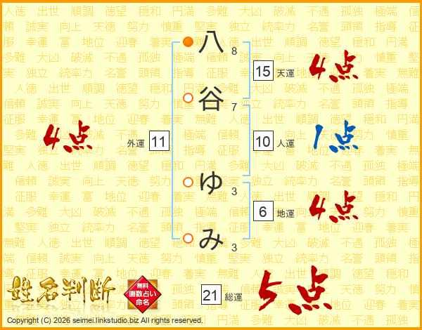八(8画)谷(7画) ゆ(3画)み(3画)