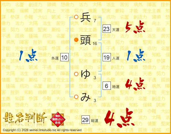 兵頭ゆみさんの総運は29画の4点!