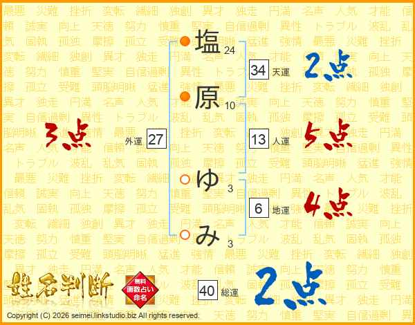 塩原ゆみさんの天運は34画の2点!