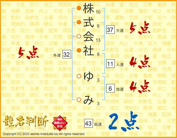 株式会社ゆみさんの総運は43画の2点!