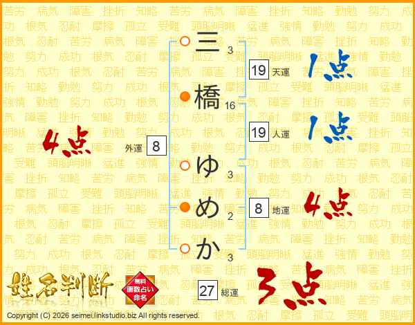 三橋ゆめかさんの総運は27画の3点!
