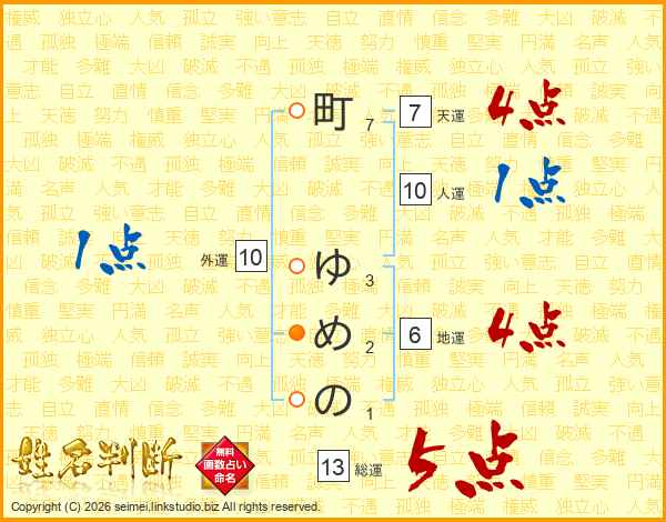 町ゆめのさんの総運は13画の5点!