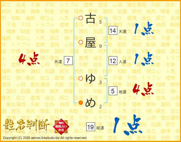 古屋ゆめさんの外運は7画の4点!