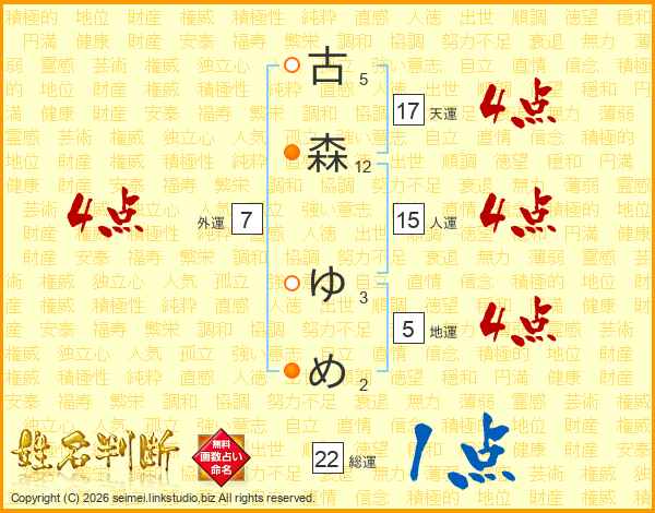 古森ゆめさんの天運は17画の4点!