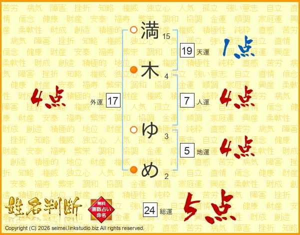 満木ゆめさんの外運は17画の4点!