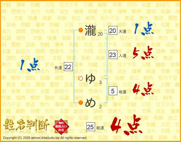 瀧ゆめさんの総運は25画の4点!