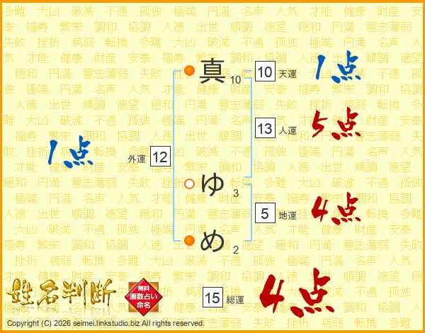 真ゆめさんの総運は15画の4点!