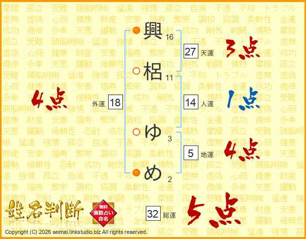 興梠ゆめさんの総運は32画の5点!