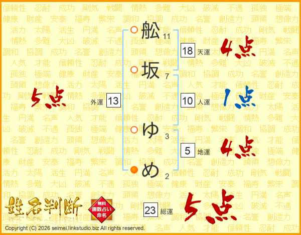 舩坂ゆめさんの総運は23画の5点!
