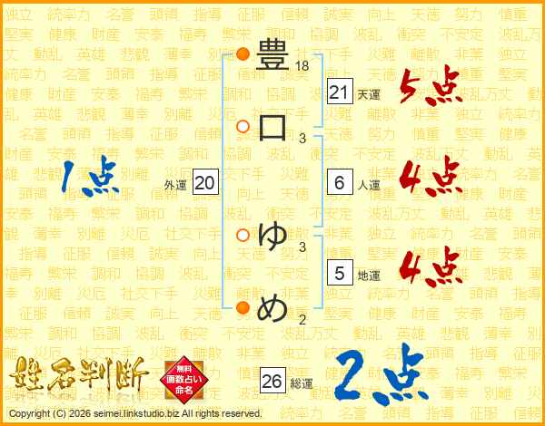 豊口ゆめさんの総運は26画の2点!